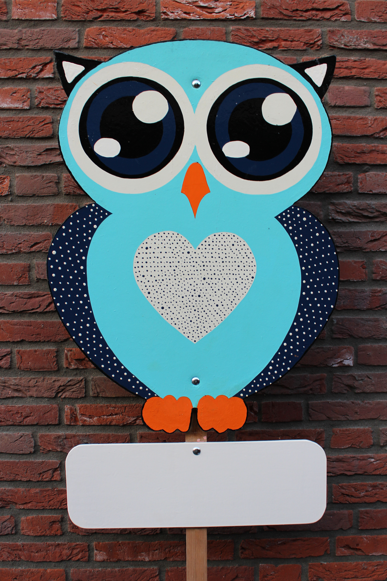 Dit geboortebord in de vorm van een wijze uil is een leuke manier om de geboorte van een kindje aan te kondigen. Het heeft een liefdevol hart in het midden van zijn buik. De blauwe kleuren zorgen ervoor dat deze uitermate geschikt is voor de geboorte van een jongen. Het bevat een los naambordje onder het bord.
