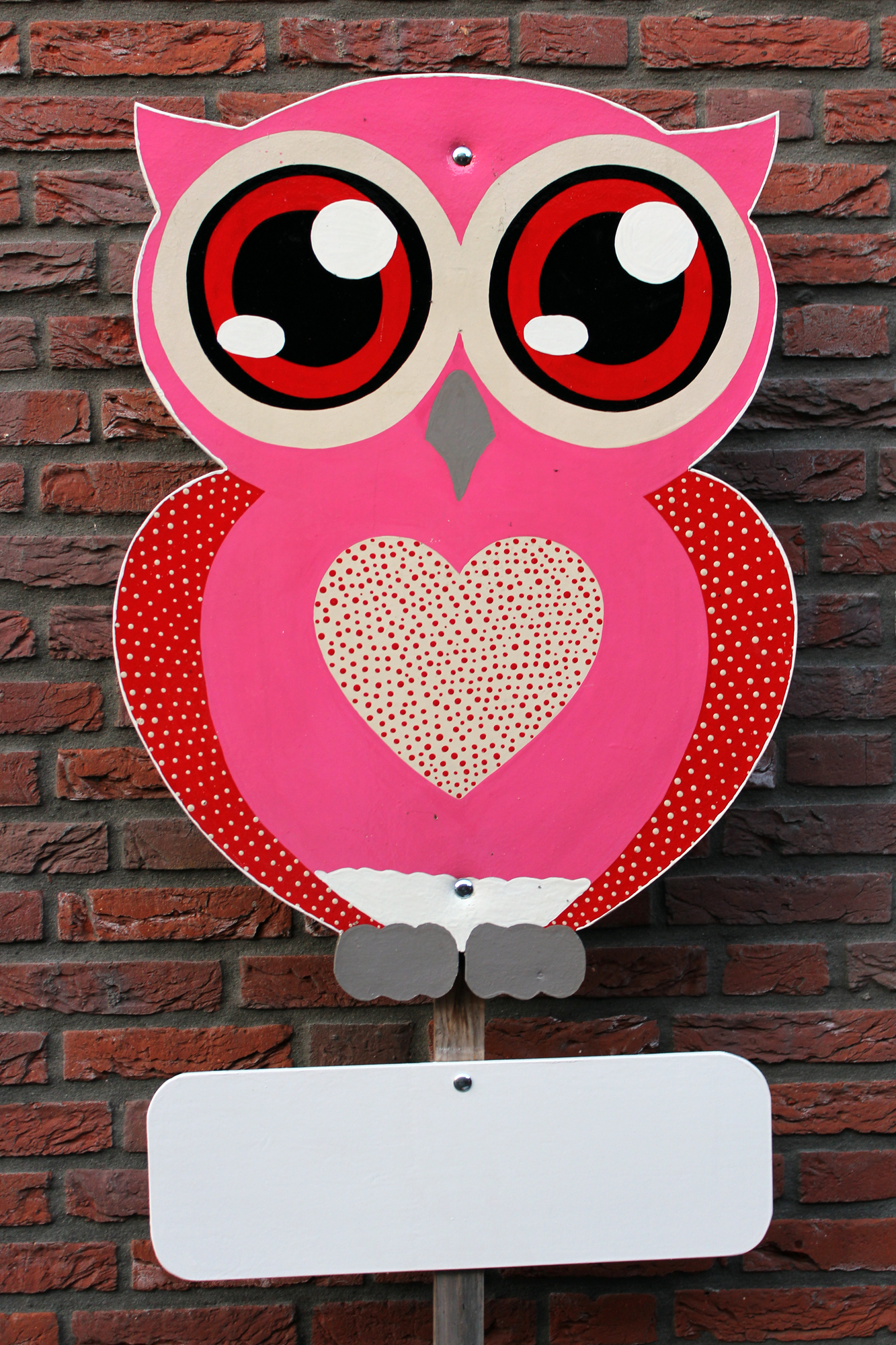 Dit geboortebord in de vorm van een wijze uil is een leuke manier om de geboorte van een kindje aan te kondigen. Het heeft een liefdevol hart in het midden van zijn buik. De roze en rode kleuren zorgen ervoor dat deze uitermate geschikt is voor de geboorte van een meisje. Het bevat een los naambordje onder het bord.
